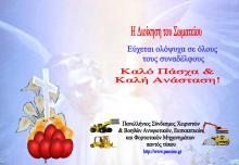 Εκ μέρους της Διοίκησης του Πανελλήνιου Συνδέσμου Χειριστών Μηχανημάτων Έργου σας ευχόμαστε Καλές Γιορτές, ευτυχισμένο και δημιουργικό το νέο έτος.